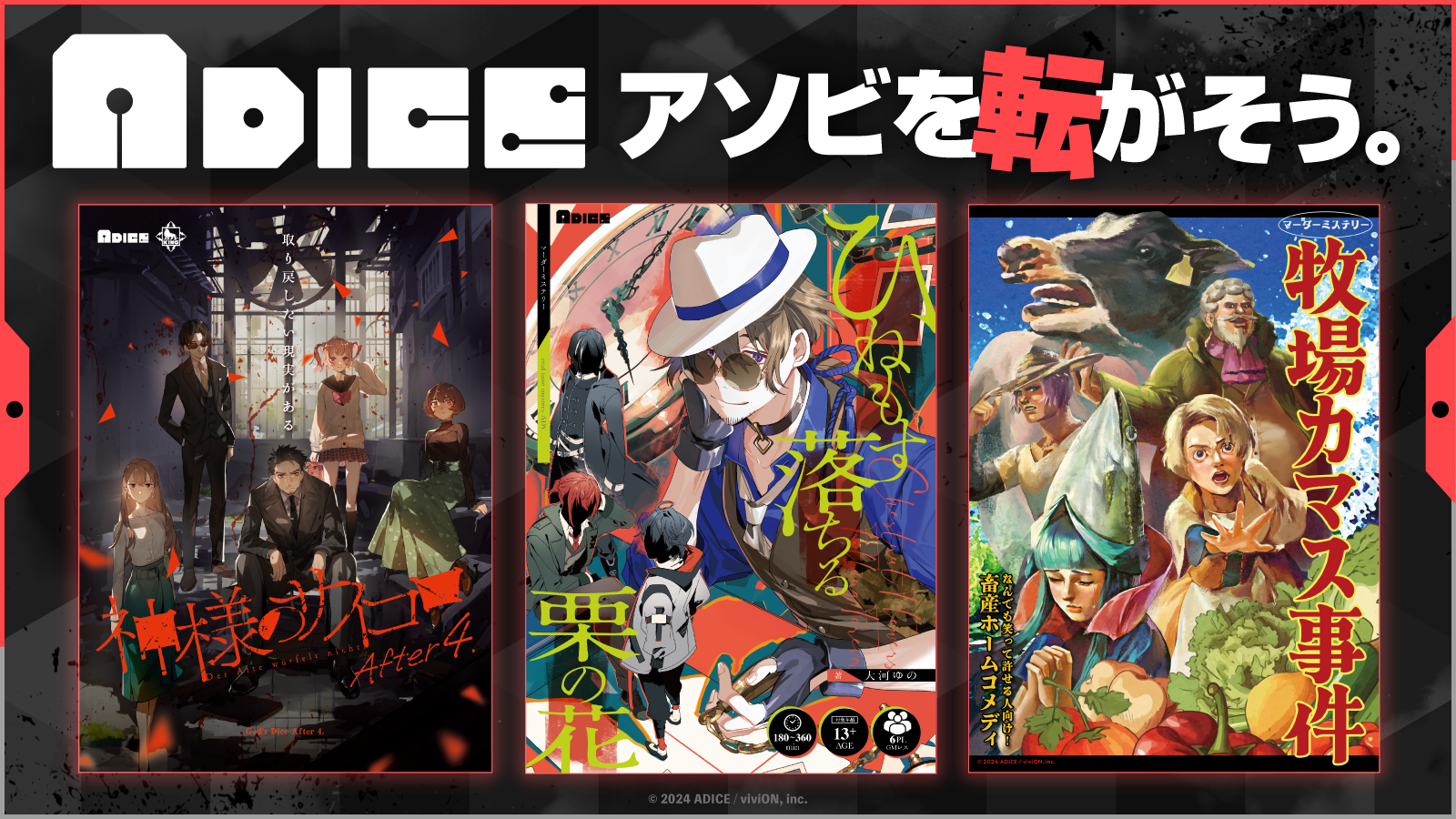 viviONが手掛けるアナログゲームレーベル『ADICE』が始動。 マーダーミステリーやボードゲームなど、こだわりのゲームが続々ラインナップ!