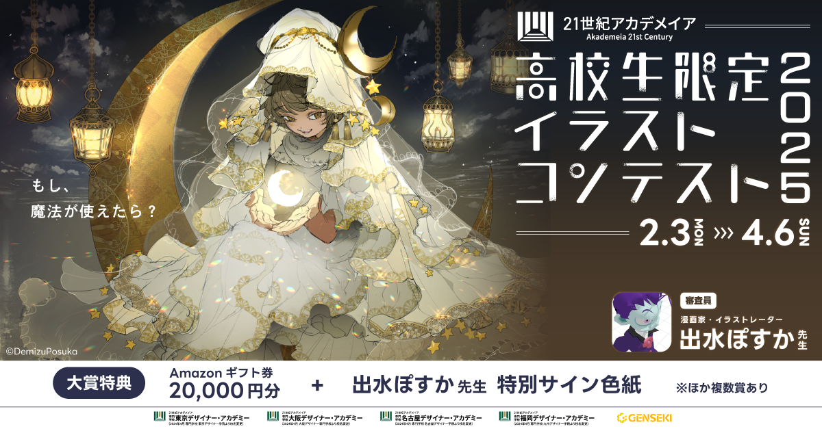 出水ぽすか氏が審査員を務める、高校生のためのイラストコンテスト「21世紀アカデメイア高校生限定イラストコンテスト」が『GENSEKI』にて開催!
