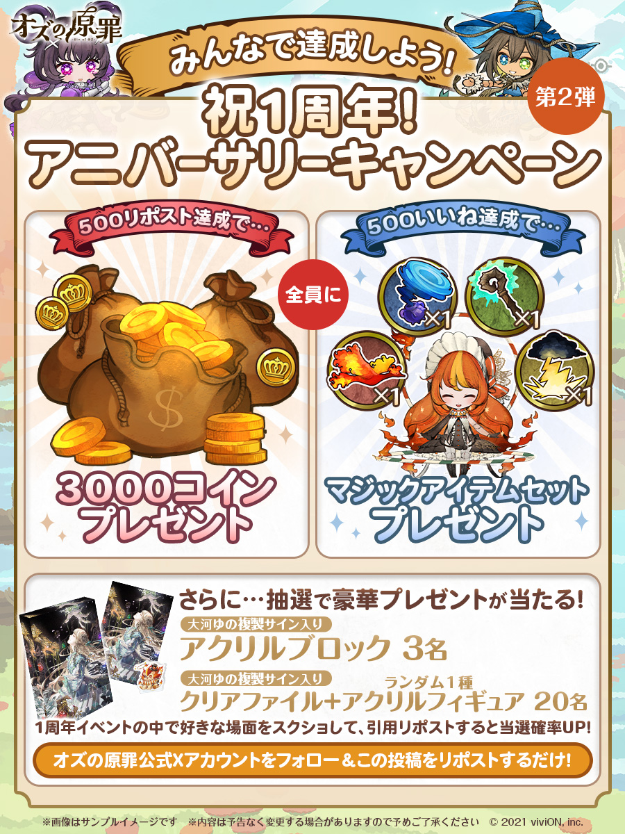 アプリリリース1周年を記念して、公式Xアカウント https://x.com/SinofOZ_jp において、リポストキャンペーンを2回に分けて開催いたします。