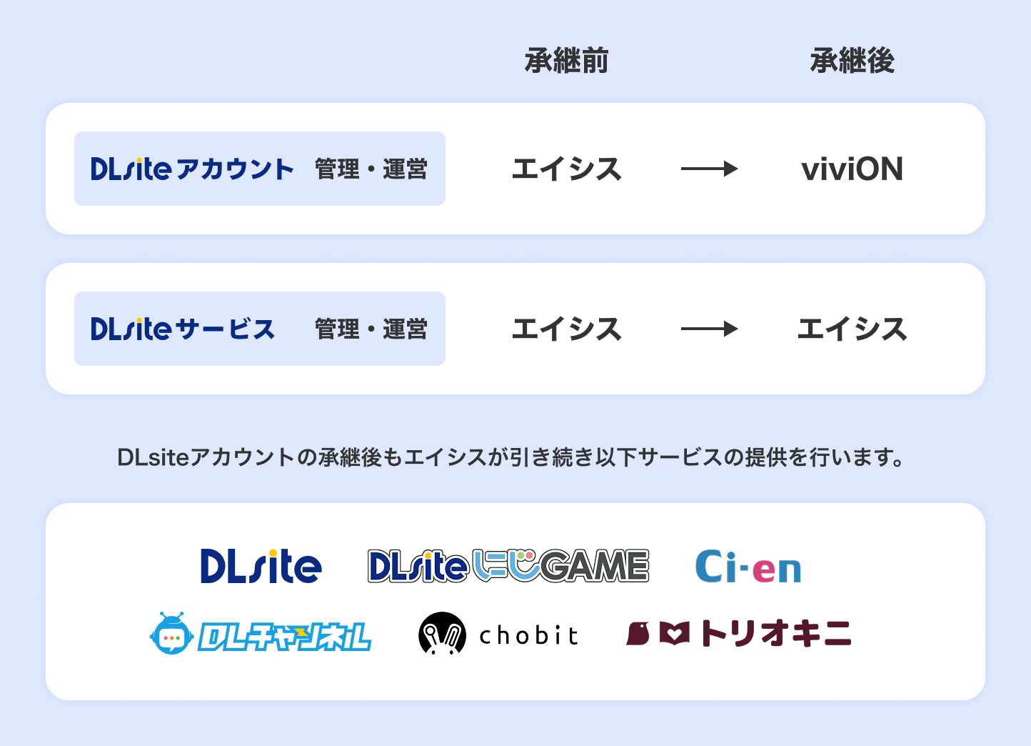 「DLsiteアカウント」管理・運営事業 承継のお知らせ