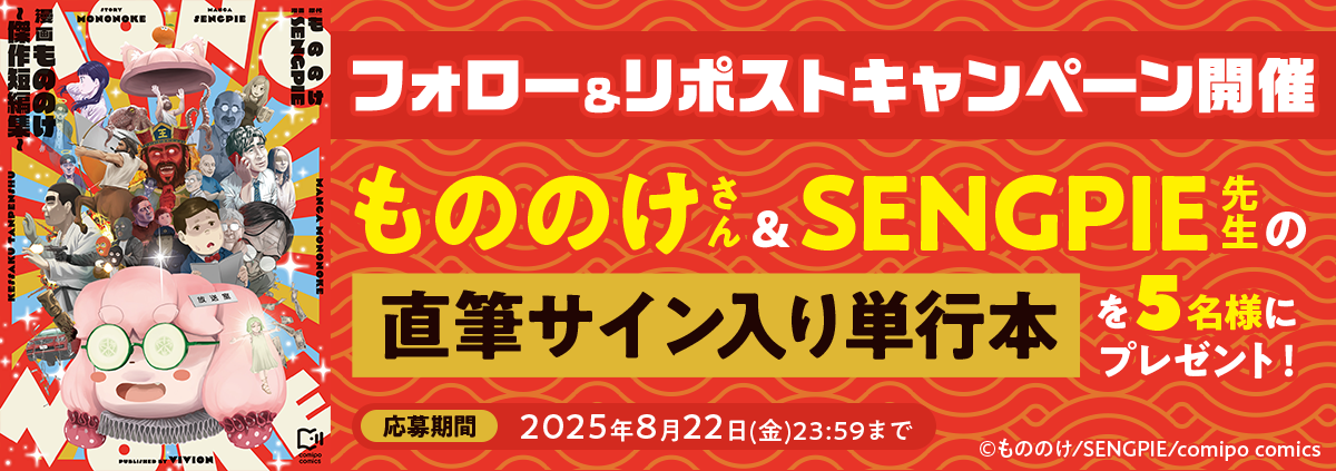 『漫画もののけ~傑作短編集~』の紙単行本発売を記念して、もののけ&SENGPIEによる直筆サイン入り単行本が当たるフォロー&リポストキャンペーンを開催します。