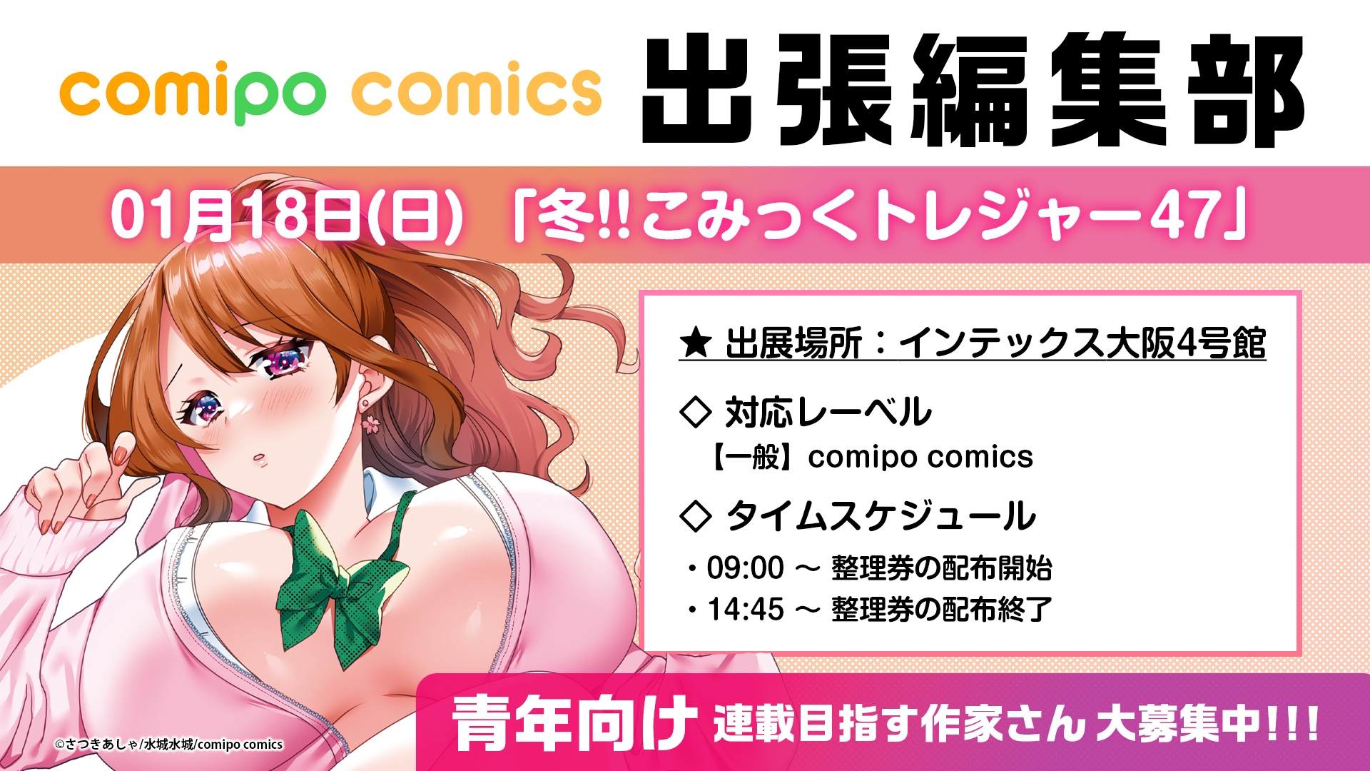 【出張編集部/大阪】1/18(日) こみっくトレジャー47|comipo comics編集部出展のお知らせ