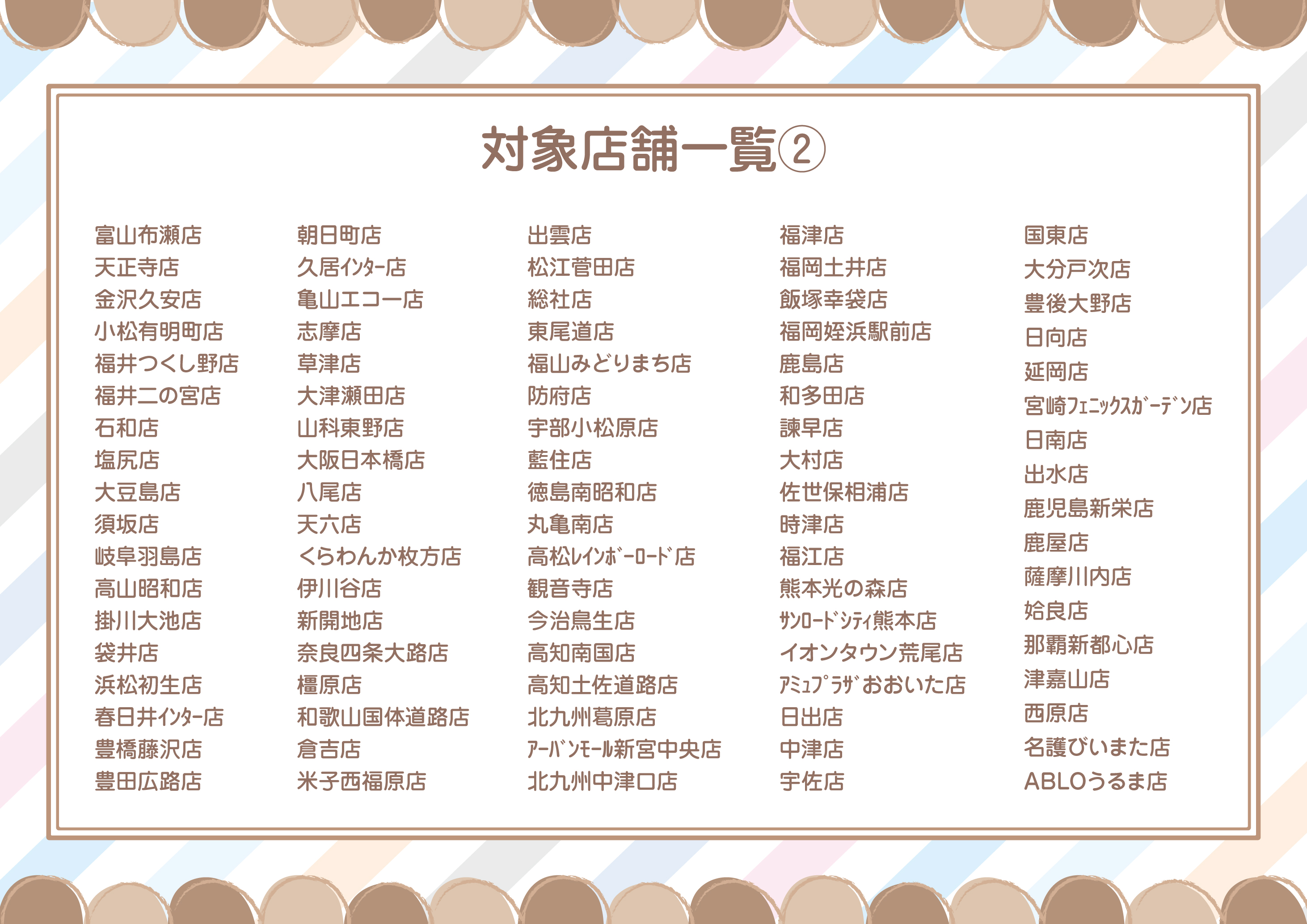配布条件: 対象商品のお買い上げ2,200円(税込)ごとに1枚。
